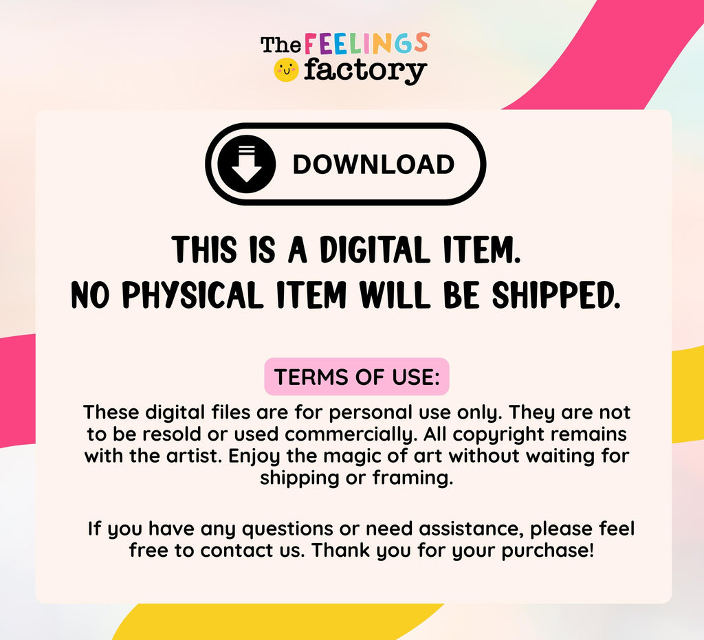 These digital files are for personal use only. They are not to be resold or used commercially. All copyright remains with the artist. Enjoy the magic of art without waiting for shipping or framing.